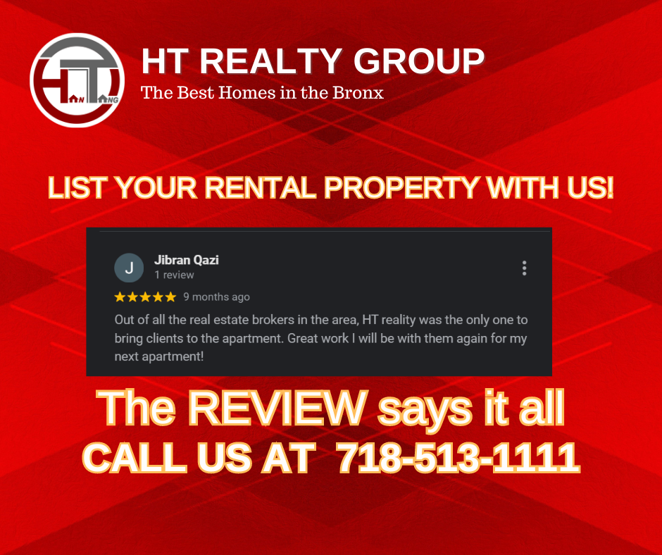 HT Realty Group is the premier property management firm in the Bronx, providing unmatched expertise and support to landlords and tenants alike. With a deep understanding of the local real estate market and a commitment to exceptional service, HT Realty Group is the ideal partner for property owners seeking to maximize their rental income and tenants looking for a stress-free move to their new homes.
